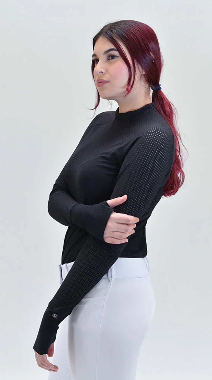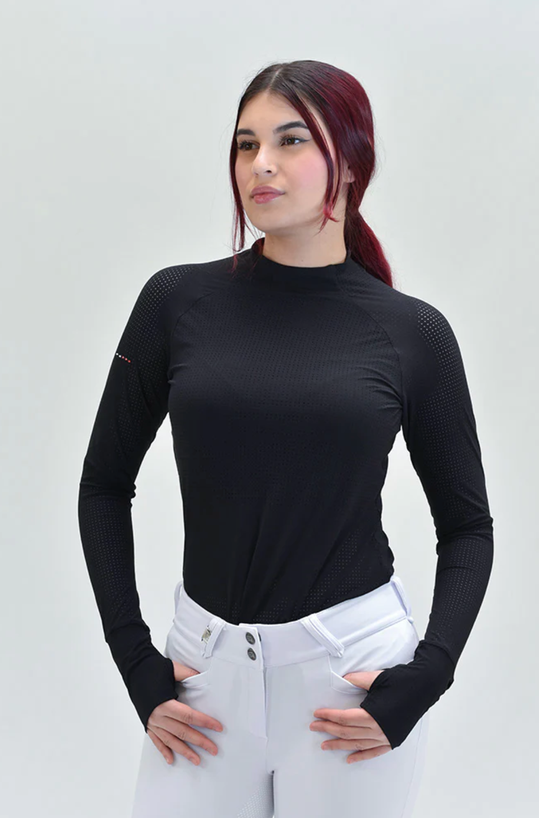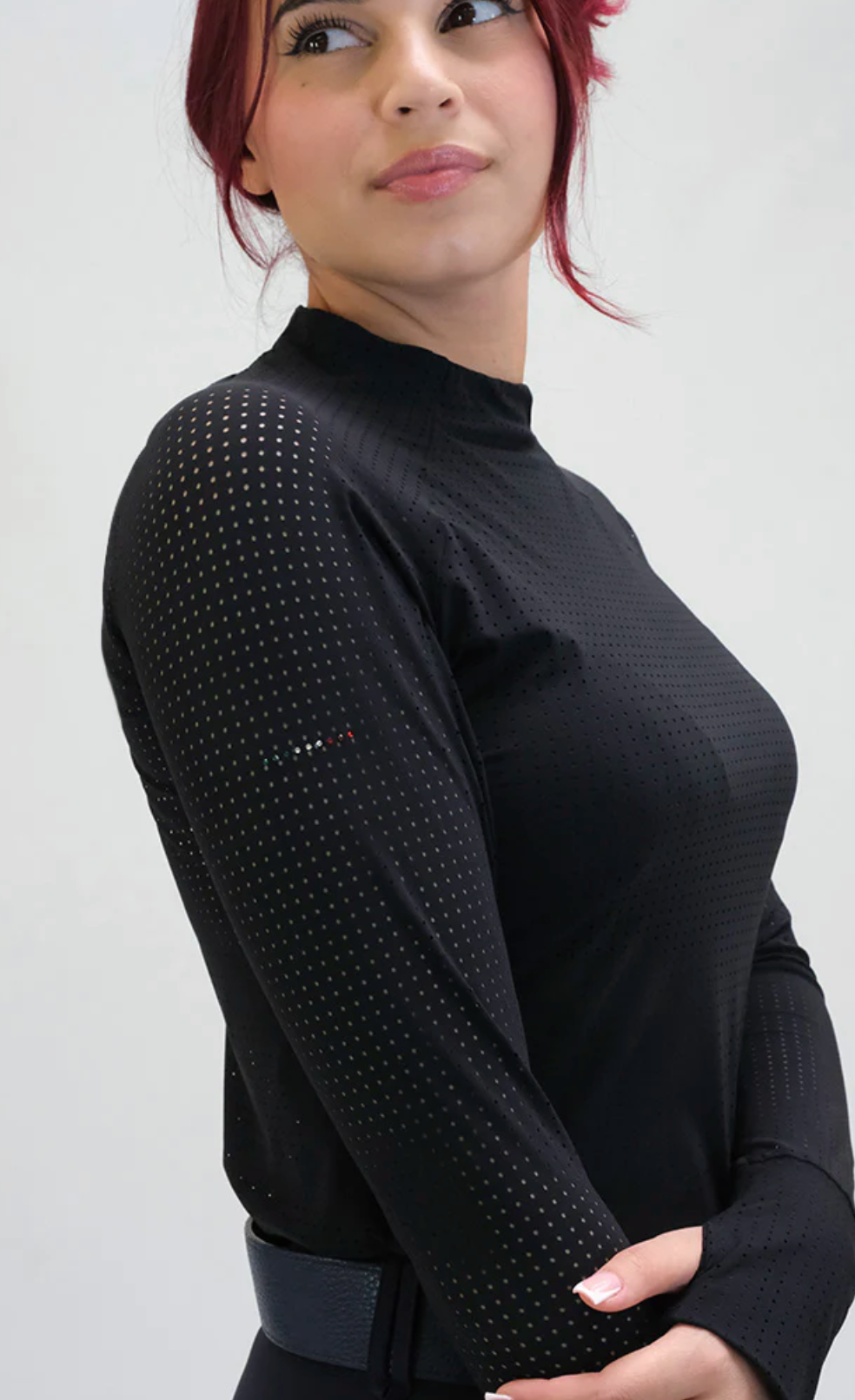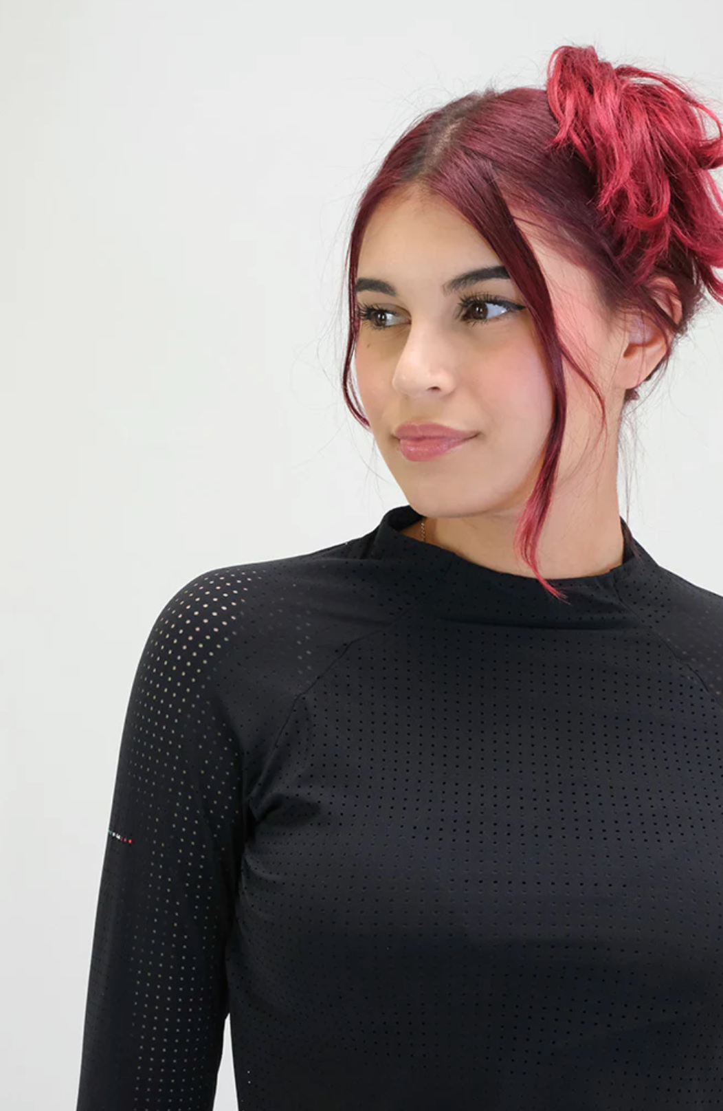 WILLA SILKY AIR is a long sleeve funnel neck style micro perforated sun shirt that can also be used for layering in cool weather. It is made with FH original lightweight, Silky Move fabric and tailored for a flattering fit and all day comfort. There is a built-in half tank layer for enhanced coverage in the chest area. The thumbhole sleeve is a must-have for athletic use and to protect hands from the sun.