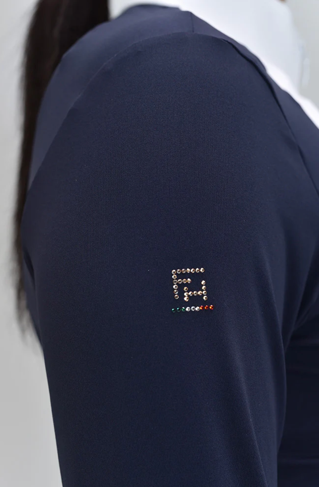High collar that closes with a zip - White small cuff - FH Crystal logo.